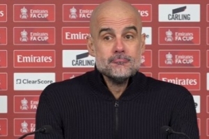 体育资讯2月15日讯 足总杯第4轮,曼城2-0索尔福德城。赛后,曼城主帅瓜迪奥拉出席新闻发布会。